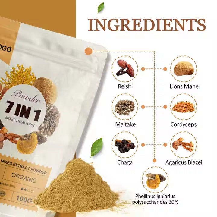 Ingredientes naturales: Formulado con 7 extractos de hongos poderosos como Reishi, Cordyceps y Melena de León.